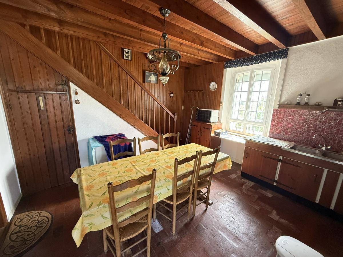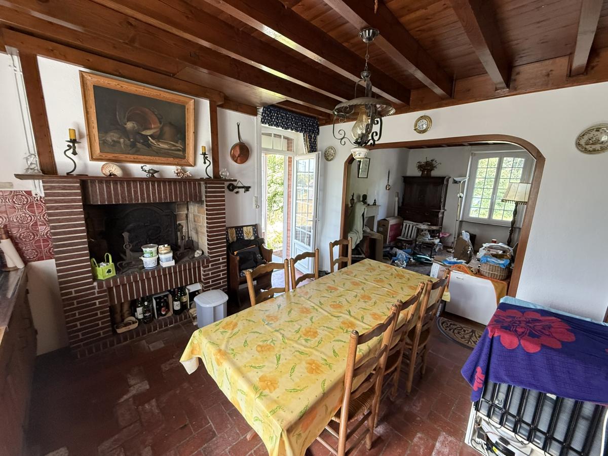 - Au rez de chaussée surélevé: porche d'entrée, WC, séjour avec cheminées et coin-cuisine.
