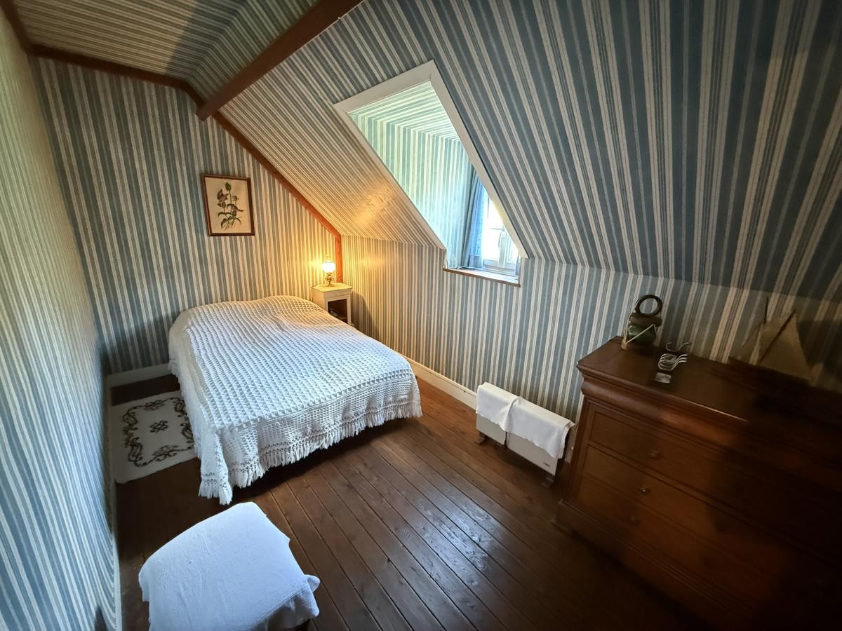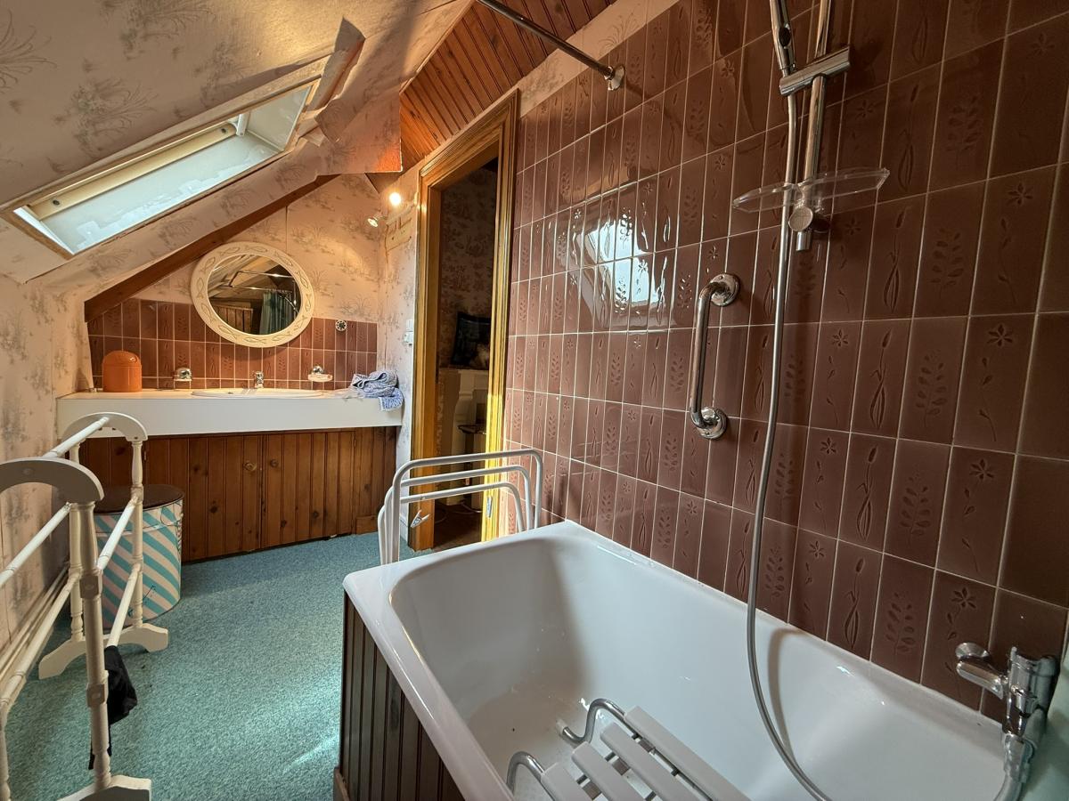 - A l'étage: palier, deux chambres, salle de bains.