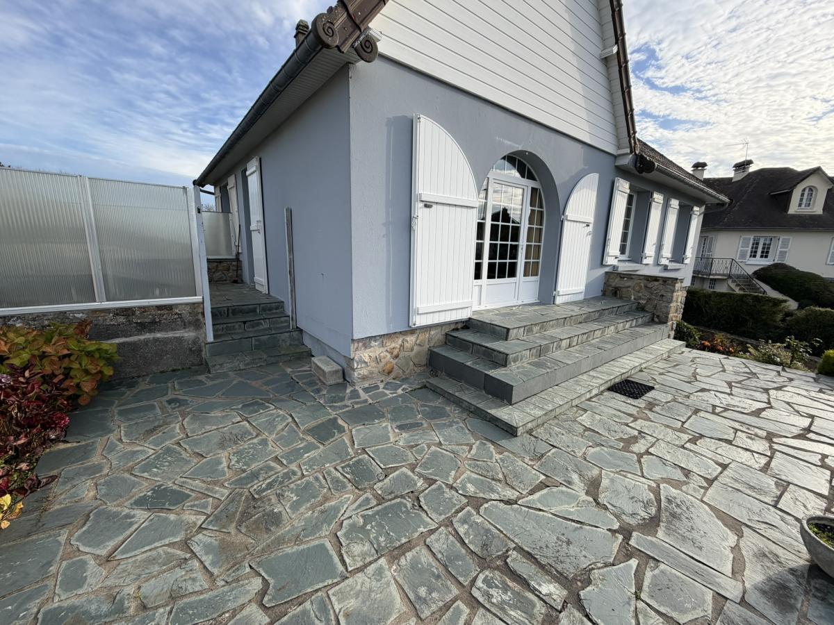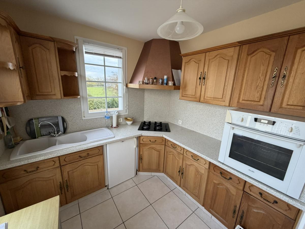 - Au rez de chaussée surélevé: grand séjour avec cheminée, cuisine équipée, salle d'eau, WC, deux chambres dont une avec placard et lavabo, troisième petite chambre.