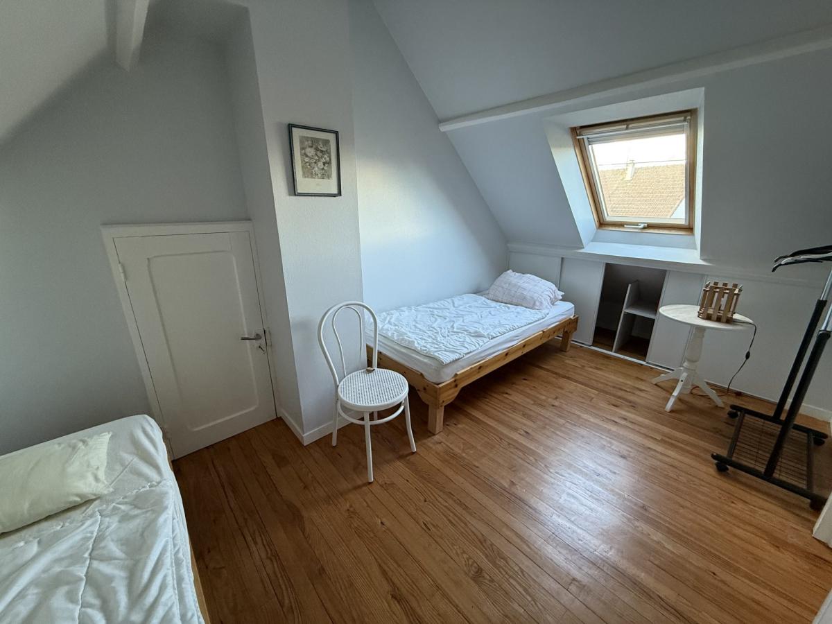 - A l'étage: palier, salle d'eau avec WC, deux chambres avec placards.