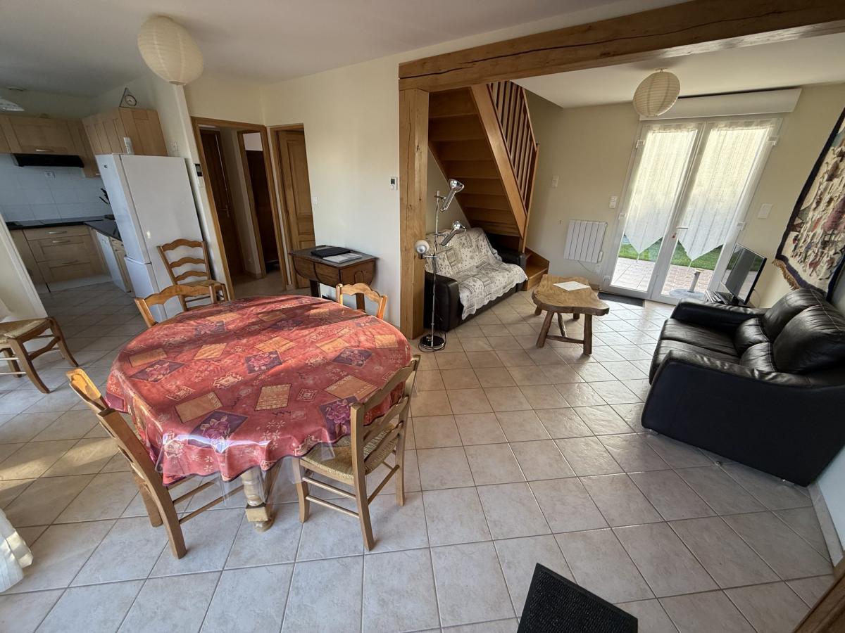 - Au rez de chaussée: séjour avec cuisine ouverte équipée, salle d'eau avec WC, une chambre, WC, garage avec grenier au dessus.